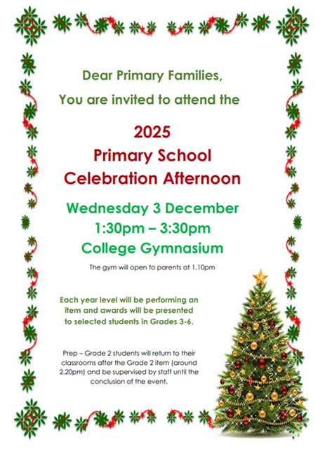 As we wrap up Term 4 and look forward to the holidays, I want to extend my heartfelt thanks to all our staff and students for making 2025 such a positive and enriching year. Your hard work, kindness, and enthusiasm have made a real difference in our school community. Wishing you and your families a safe, relaxing, and very Merry Christmas. May you enjoy a well-deserved break and return refreshed for another fantastic year in 2026.